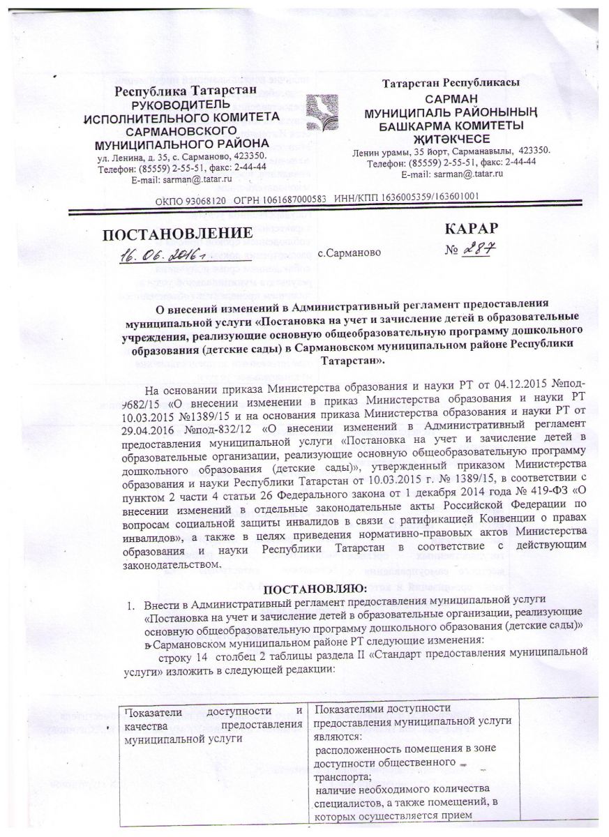 Изменения в Административный регламент