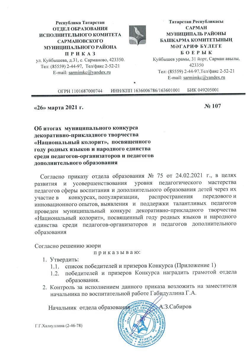 Приказ об итогах муниципального этапа конкурсов антикоррупционной направленности
