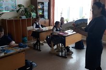 "Исәнме, минем Татарстаным!" Китапханәче Фатыхова Ф.Г. 2-3 классларда әлеге тема астында әңгәмә уздырды. Татарстан Фән һәм Мәгариф министрлыгы тарафыннан бүләк булып кайткан китапчык-буяу белән таныштырды һәм укучыларга таратты. В рамках благотворительной акции "100-летие ТАССР - 100 добрых дел!" Здравствуй, мой Татарстан!" Школьный библиотекарь Фатыхова Ф.Г. провела беседу с учащимися 2-3 классов. Ознакомила их с книжкой-раскраской, выпущенной МО и Н РТ как подарок 100-летию ТАССР, затем вручила детям эти книжки. 26.02.2020