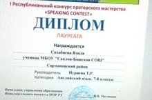 Диплом лауреата Республиканского конкурса ораторского мастерства по английскому языку. Инглиз телендә ораторлык осталыгы буенча республика конкурсында лауреат булдык. 04.04.2018