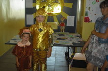 Бүген лагерь балалары тышта бик күңелле уеннарда катнаштылар, рәсемнәр ясадылар, әкият иленә сәяхәт иттеләр, төрле әкият геройлары белән очраштылар.