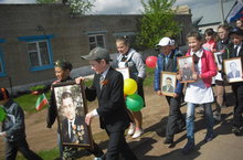 "Үлемсез полк" акция кысаларында безнең мәктәбебез укучылары һәм укытучылары үзләренең сугышта катнашкан, ләкин хәзерге вакытта безнең янда булмаган бабаларының портретларын тотып Җиңү парадына чыктылар.