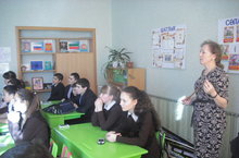 Бөек Җиңүнең 70 еллыгы якынлашу уңаеннан мәктәптә бик күп чаралар уздырыла. Бүген татар теле һәм әдәбияты укытучысы Гөлүзә Әзгамовна 9 класслар белән сугыш афәте турында кичә уздырдылар.