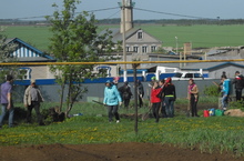 17 нче май көнне барыбыз да бакчада эшләдек. Кечкенәләр түтәлгә яшелчәләр утырттылар, ә югары класслар агач утырттылар.