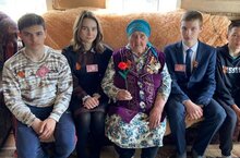 Бөек Җиңүнең 77 еллыгын каршылап. "Кызыл гвоздика" акциясе кысаларында мәктәбебез юнармиячеләре тыл ветераны Хакова Галия апаны тәбрикләп кайттылар. 04.05.2022
