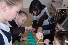 Неотъемлемой частью кружка является ручной труд, в процессе которого дети создают красивые и полезные поделки. Так на занятиях кружка «Наклейка» ученики 3-4 классов сделали из яичных лотков "Крокодил".Они с желанием и интересом занимаются данным видом трудовой деятельности. Түгәрәкнең аерылгысыз өлеше - кул эше, бу вакыт эчендә балалар матур әйберлэр ясыйлар. Шулай итеп, "Наклейка"тугәрәгендә 3-4 класс укучылары йомырка савытыннан "Крокодил" ясадылар. Алар бу төр эшне зур кызыксыну белән эшләделәр. 01.04.2021