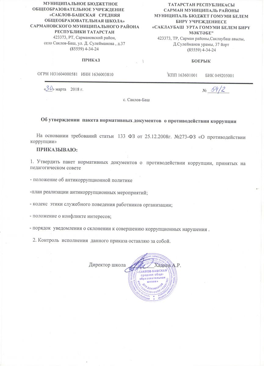Муниципальное бюджетное общеобразовательное учреждение «Саклов-Башская средняя общеобразовательная школа» Сармановского муниципального района Республики Татарстан / Татарстан Республикасы Сарман муниципаль районы муниципаль белем бирү учреждениесe «Саклау-Баш урта гомуми белем бирү мәктәбе»