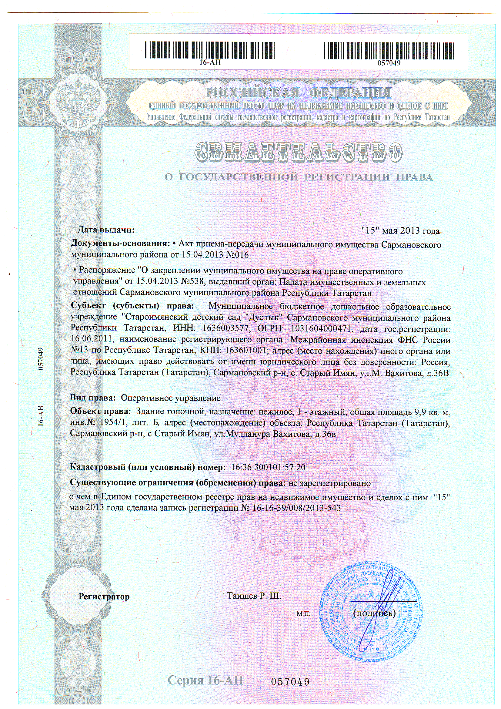 Короткое название: МБДОУ "Староимянский детский сад "Дуслык"