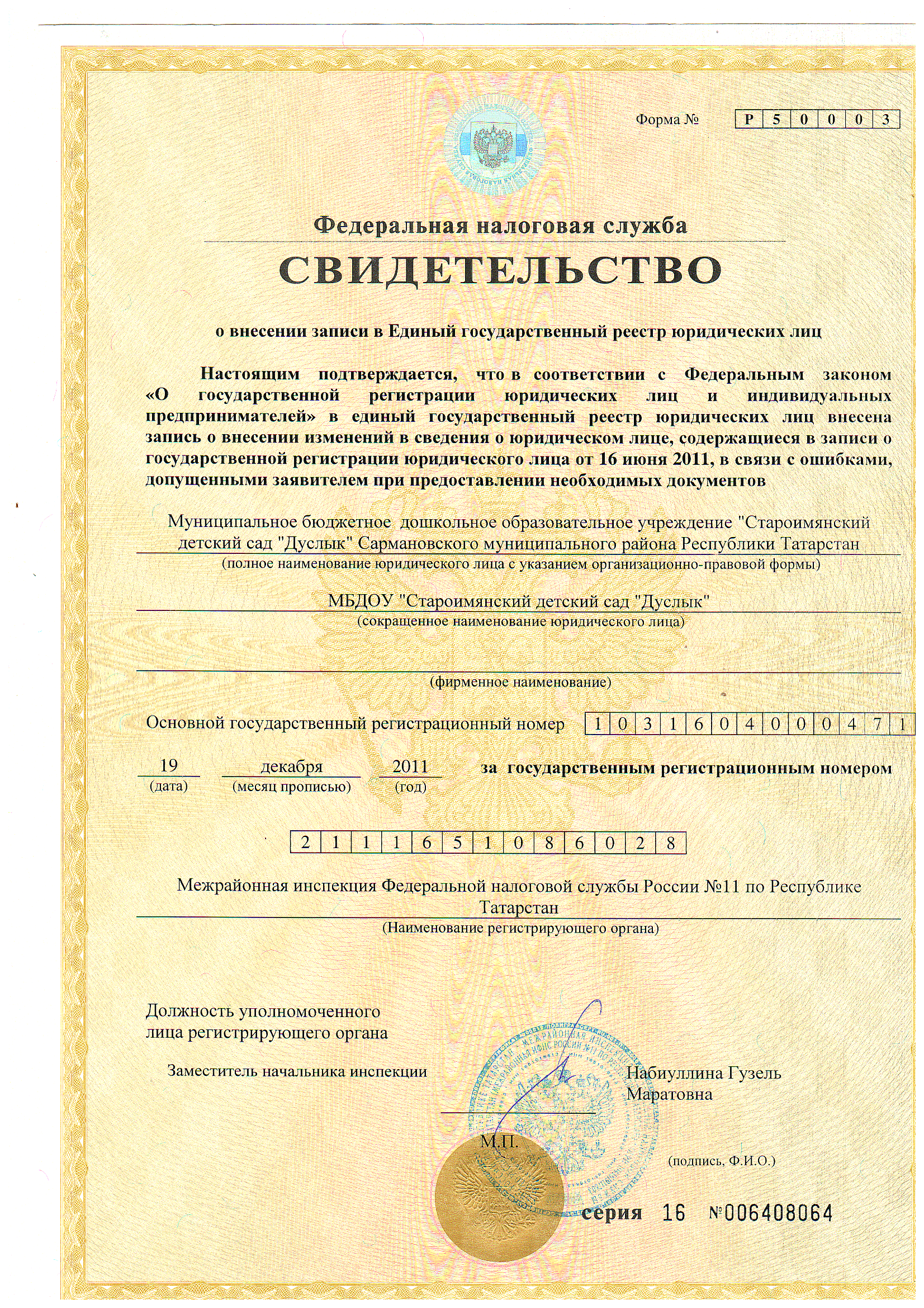 Адрес: 423372, Республика Татарстан, Сармановский район, с. Старый Имян,ул.М.Вахитова,д36В.