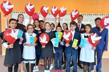 В рамках флешмоба обучающиеся получили буклеты «Памятка школьникам по поведению при возникновении угроза совершения террористического акта»