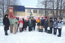 Юнармейцы МБОУ «Старокаширская СОШ имени Зинната Хасанова» в честь 80-летия полного освобождения Ленинграда от фашисткой блокады, расчистили снег местного мемориала посвящённого участникам Великой Отечественной войны.