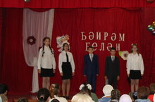 Мәктәпнең иң яхшы укучыларына Россия Федерациясе Дәүләт флагын һәм Татарстан Республикасының флагын күтәрү тапшырылды.