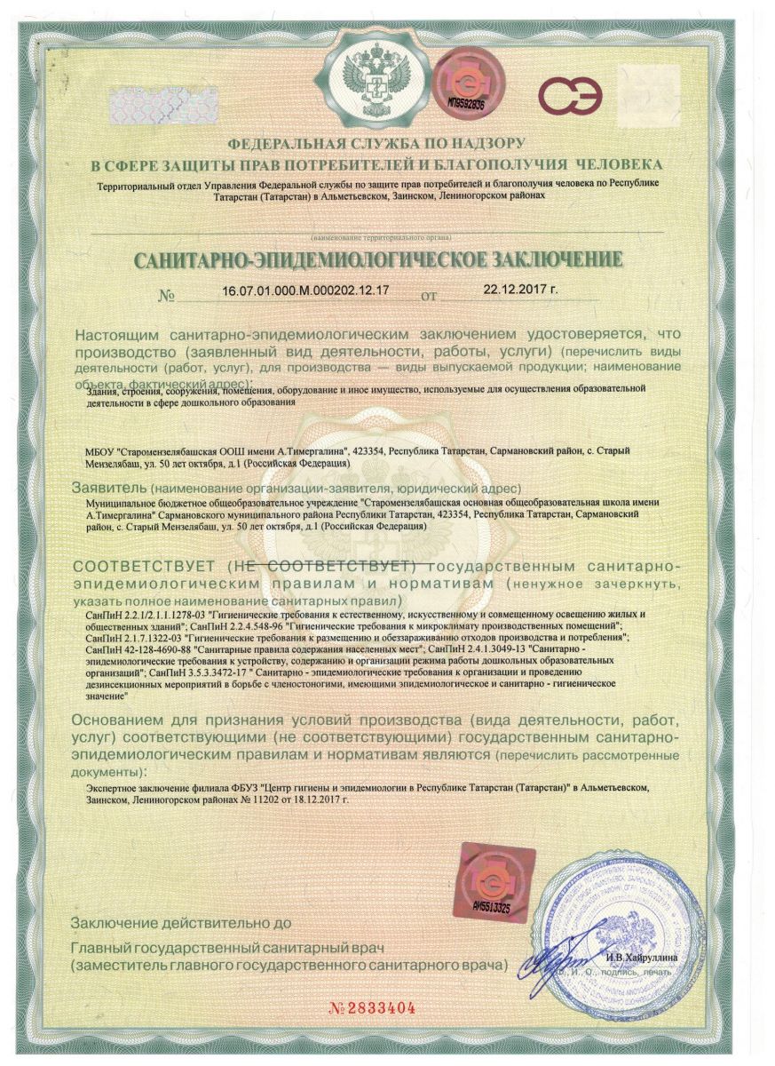 Адрес: 423354, Республика Татарстан, Сармановский район, с. Старый Мензелябаш, ул. 50 лет Октября, д. 1