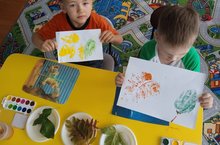 Нетрадиционным методом рисовали листья.