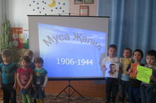 Бүген герой шагыйрь Муса Җәлилнең тууына 110 ел тулу уңаеннан бакчабызда бәйрәм иртәсе үткәрелде. Балаларга китапханә җитәкчесе презентация күрсәтте, яттан шигырьләр сөйләнелде, балалар кулы белән ясалган рәсемнәргә конкурс үткәрелде.
