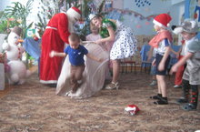 Зарыгып көткән Яңа ел бәйрәмен балалар күңелле итеп каршы алдылар. Алар Кыш бабай һәм Карчәчәккә үзләренең һөнәрләрен күрсәттеләр, бергәләп төрле уеннар уйнадылар. Ахырда балаларга яна ел бүләге таратылды.