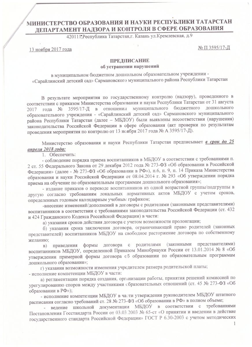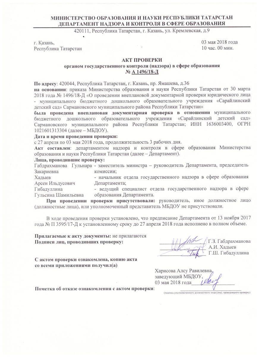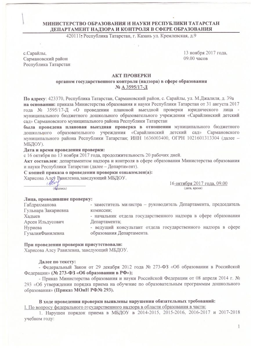Акт проверки № А 3595/17-Д от 13.11.2017г
