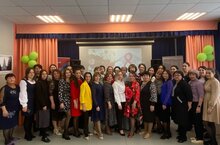 Бәйрәм залында мәктәп коллективының хатын-кызлары җыелды.