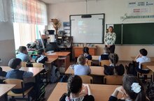 Бүген Бөек Ватан сугышы һәм туган якны өйрәнү музее фонды сакчысы Р.В. Шәфигуллина 3 нче сыйныфта "Хәтердә һәр минут" дигән темага әңгәмә уздырды. Регина Вячеславовна балаларга Ватаныбызны саклаган якташларыбыз, георгий тасмасының тарихы һәм әһәмияте турында сөйләде. Ул балаларга георгий тасмаларын бүләк итте.