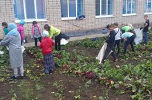 Учащиеся в школе убрали урожай.