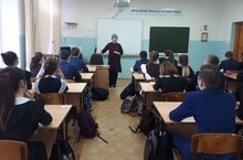 Гасановым Д.Г.с учащимися 8 и 10 классов. Эта встреча была посвящена памяти воинов Афганистана и героям Сталинградской битвы. Полковник в отставке Газизуллин Р. рассказал о боевых действиях в Афганистане.Гасанов Д.Г. познакомил учащихся с положением дел в российской армии. Он рассказал, что престиж армии год от года растет, улучшается материальная поддержка армии, что профессиональное ядро армии разрастается..