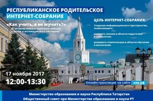Во исполнение плана работы Министерства образования и науки Республики Татарстан 17.11.2017 с 12.00 до 13.30 состоится Республиканское родительское интернет-собрание.