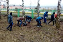 Ученики проводят уборку территории школы. 15.04.2017