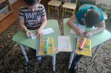 Мәктәпкә әзерлек төркемендә,мәктәпкә әзерлек буенча тыгыз эшчәнлек алып барыла.Балалар төрле күнегүләр, мисаллар чишәләр.