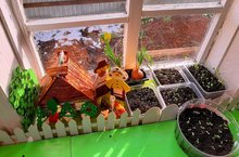 Балалар бакчасында тәрәзә төбендә яшелчә бакчасы. Мини огород на подоконнике.