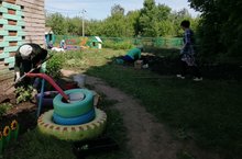 Бакчабыз җәй көне матур булсын өчен чәчәкләр утырттык.