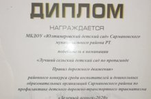 12 февраль көнне Сарман районы "Лилия" балалар бакчасында балалар бакчалары һәм тәрбиячеләр арасында үткәрелгән "Яшел ут" смотр -конкурсының йомгаклау туры үткәрелде. Авыл балалар бакчалары арасында җиңүче дип Юлтимер балалар бакчасы да танылды. / В ДОУ "Лилия" прошёл заключительный тур конкурса "Зеленый огонёк". Наш детский сад награжден Дипломом победитель в номинации "Лучший сельский сад по пропаганде Правил дорожного движения".