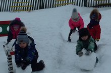 Саф һавада уйнавы ничек күңелле! Кар бабай ясарга менә дигән җылы көн бүген. Как хорошо на свежем воздухе! Снова лепим снеговика.