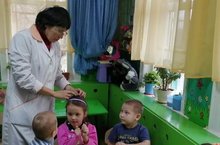 Фельдшер Хакимуллина Г. һәрдаим балаларның сәламәтлеген кайгыртып тикшереп тора. /Фельдшер Хакимуллина Г. заботиться о здоровье детей, проводит профилактические осмотры детей.