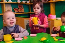 Яңа уенчыклар белән бик яратып уйныйбыз./ Как приятно играть с новыми игрушками.