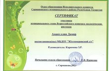 Гибадуллин Рузиль стал победителем в номинации "Выразительное исполнение " VII - Республиканской научно- практической конференции "Туган җир сулышы" по теме "Люблю свой край родной".