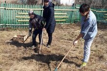 В рамках санитарного двухмесячника проходит уборка территории детского сада.