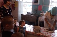 Буген балалар бакчадагы аш пешеру булмэсендэ кунакта булдылар. Алар пешекче эшенен серлэренэ тошенделэр, Голназ апаларынын яшелчэ ашын ничек пешеруен кузэттелэр.