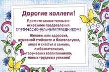 Дорогие коллеги, поздравляем вас с профессиональным праздником воспитателя и дошкольного работника! Вы носите неоценимый вклад в воспитание и развитие каждого малыша, который переступает порог детского сада. Именно от вас зависит, какие знания и умения станут основой в процессе становления личности ребенка.