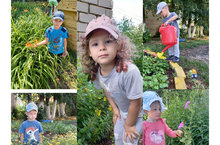 Бакчабызны матурлап күп төрле чәчәкләр үсә. / Каждый год наш сад стараемся украсить территорию разными цветами.