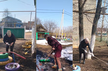 1 апрельдән санитар икеайлык игълан ителде. Безнең балалар бакчасы хезмзткәрләре дә бакча территориясен чистартып матурлау буенча эш башладылар. / С 1 апреля был объявлен санитарный двухмесячник. Сотрудники нашего детского сада начали работу по уборке территории детского сада.