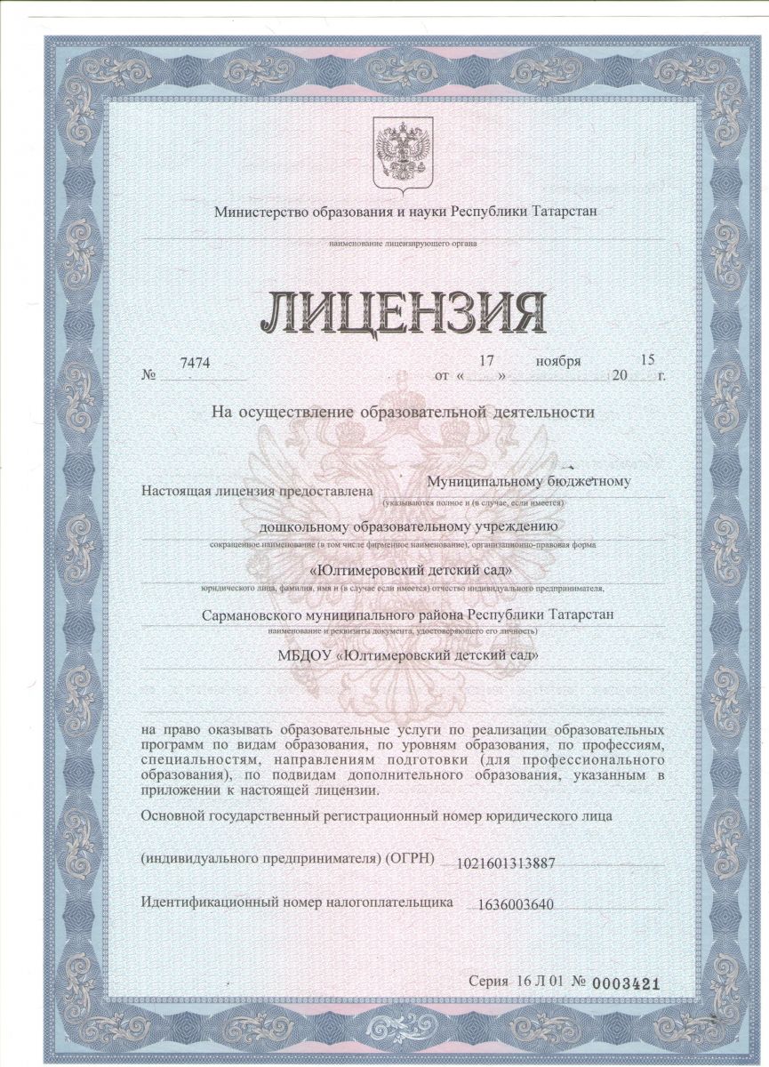 Муниципальное бюджетное дошкольное образовательное учреждение «Юлтимеровский детский сад" Сармановского муниципального района РеспубликиТатарстан/Татарстан Республикасы Сарман муниципаль районы"Юлтимер балалар бакчасы" муниципаль бюджет мәктәпкәчә белем бирү учреждениесе
