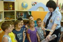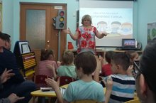 Сегодня в детском саду прошла встреча с инспектором по пропаганде БДД Е.С. Гараниной. Была проведена беседа и игры с детьми, показ мультфильмов по безопасности дорожного движения.