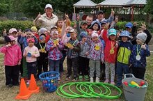 Соревновались 2 команды "Солнышко" и "Капитошка". Участвовали дети из 3,5 и 6 групп. Ребята показали свою силу и ловкость в весёлых эстафетах.