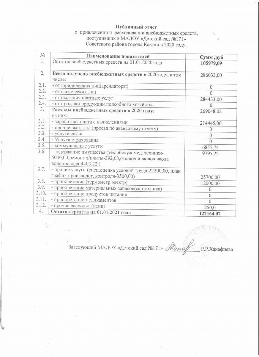 Отчет о привлечении и расходовании внебюджетных средств за 2020 год