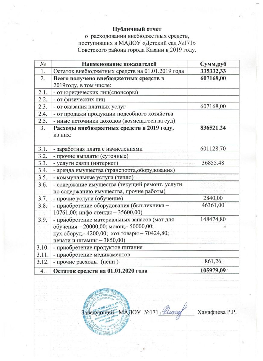 Отчет о привлечении и расходовании внебюджетных средств за 2019 год