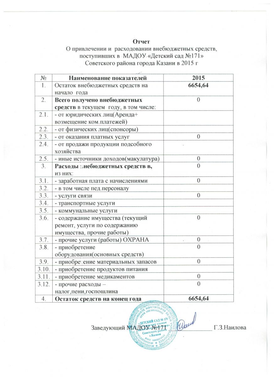 Отчет о привлечении и расходовании внебюджетных средств в 2016 г