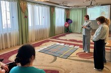 Сегодня в детском саду прошел семинар-практикум для слушателей республиканских курсов повышения квалификации педагогов ДОУ по теме: "Взаимодействие детского сада и семьи по вопросам воспитания, обучения и развития детей первых трех лет жизни". Педагогами были представлены фрагменты образовательной деятельности. Были представлены авторские дидактические игры и пособия.