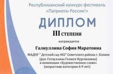 Воспитанники нашего детского сада участвовали в Республиканском конкурс-фестивале "Патриоты России!" Заняли призовые места. Поздравляем и желаем дальнейших творческих успехов!
