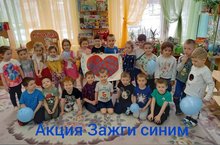 2 апреля в детском саду прошла акция "Поддержи синим".Всемирная акция «Зажги синим» (Light It Up Blue) была запущена в 2005 году организацией «Аутизм говорит» (Autism Speaks) и проводится ежегодно в знак солидарности с людьми с аутизмом и их семьями, а также для привлечения внимания к проблемам аутизма. Инициатором этой акции в РФ выступил Центр реабилитации инвалидов детства «Наш солнечный мир», который в 2015 году получил статус представителя Light It Up Blue в России.