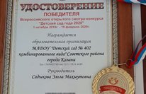 Коллектив МАДОУ "Детский сад №402 комбинированного вида" Советского района г.Казани принимал участие во Всероссийском открытом смотре-конкурсе "Детский сад года 2020" и стал Победителем. Конкурс проводился с 01.10.2019 года по 19.02.2020года. Поздравляем МАДОУ №402 с ПОБЕДОЙ!!!